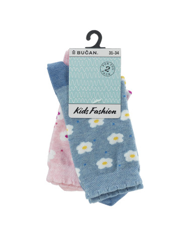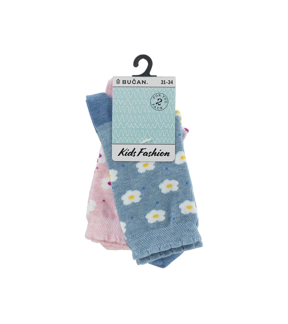 Otroške nogavice - 2 pack bele rožice roza in jeans