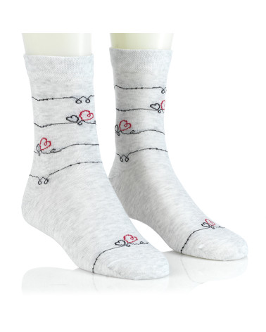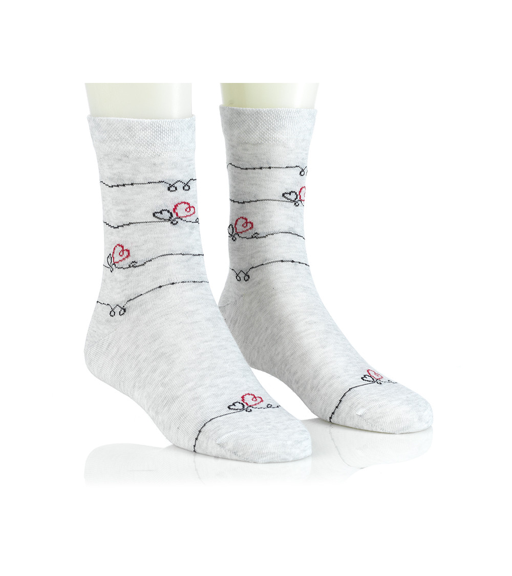 Modne nogavice - vitice in srčki na svetlo sivi podlagi